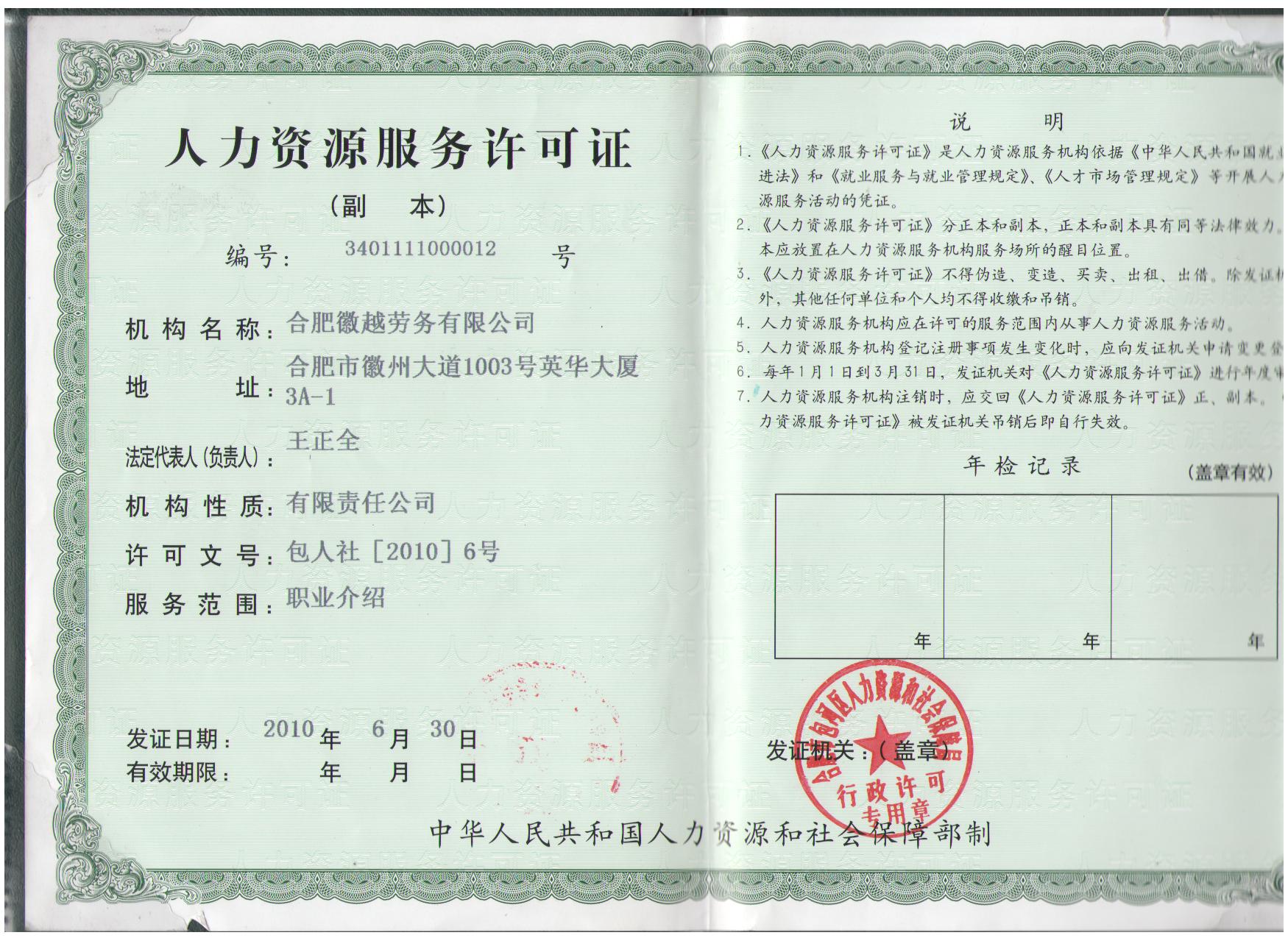 徽越公司自2008年中建總公司及多家世界500強企業(yè)授權(quán)招工資格以來,在同行業(yè)知名度信譽 度較高。徽越公司是安徽省一家經(jīng)過合肥市工商行政管理局(安徽省工商行政管理局備案審核)、合肥市勞動和社會保障局及合肥市建設(shè)委員會(安徽省建設(shè)廳資質(zhì)審批)審核批準(zhǔn)成立的正規(guī)合法的且具有豐富建筑勞務(wù)輸出和項目施工管理經(jīng)驗的信譽良好的勞務(wù)派遣和勞務(wù)分包...>>查看詳情
